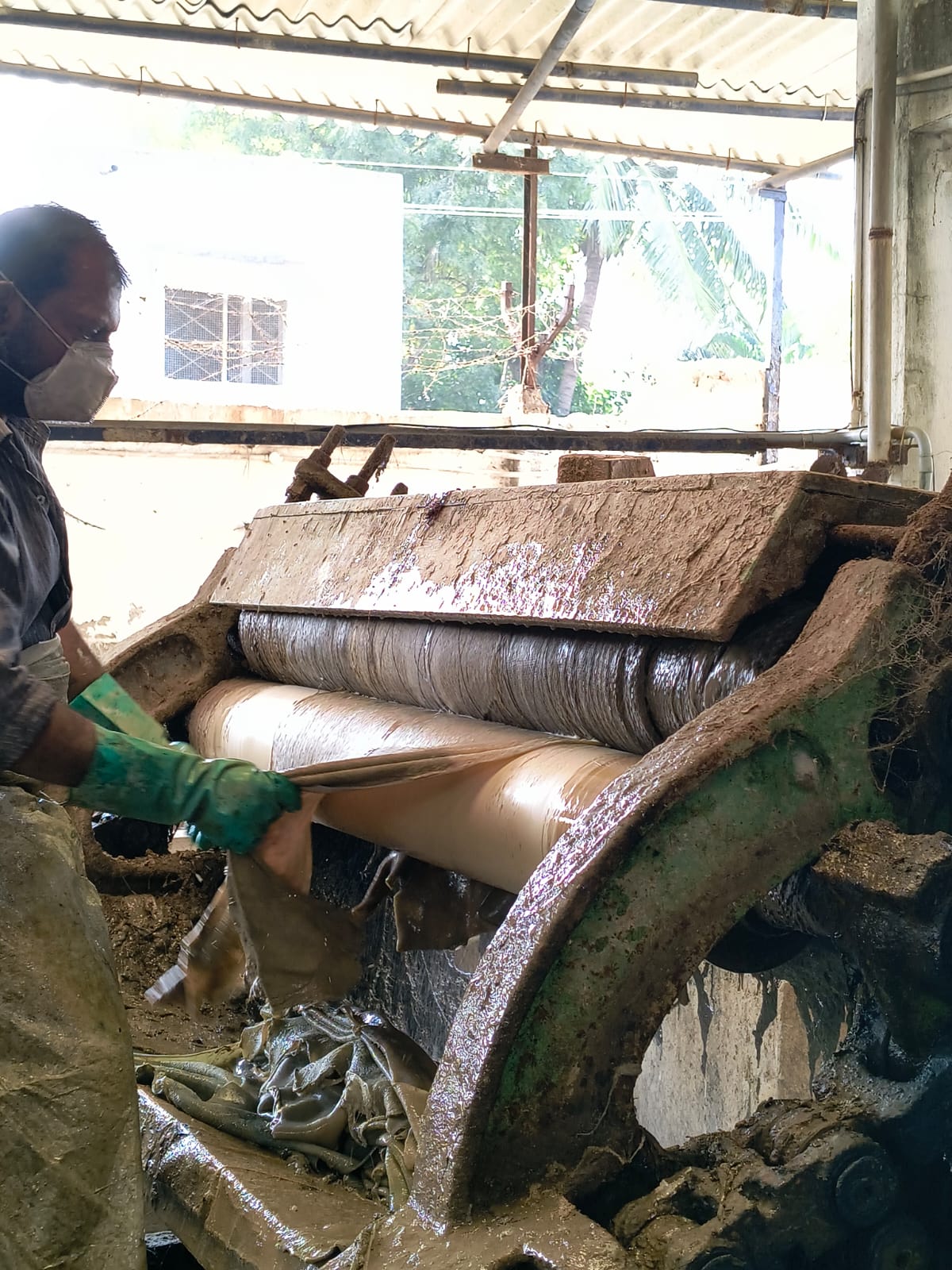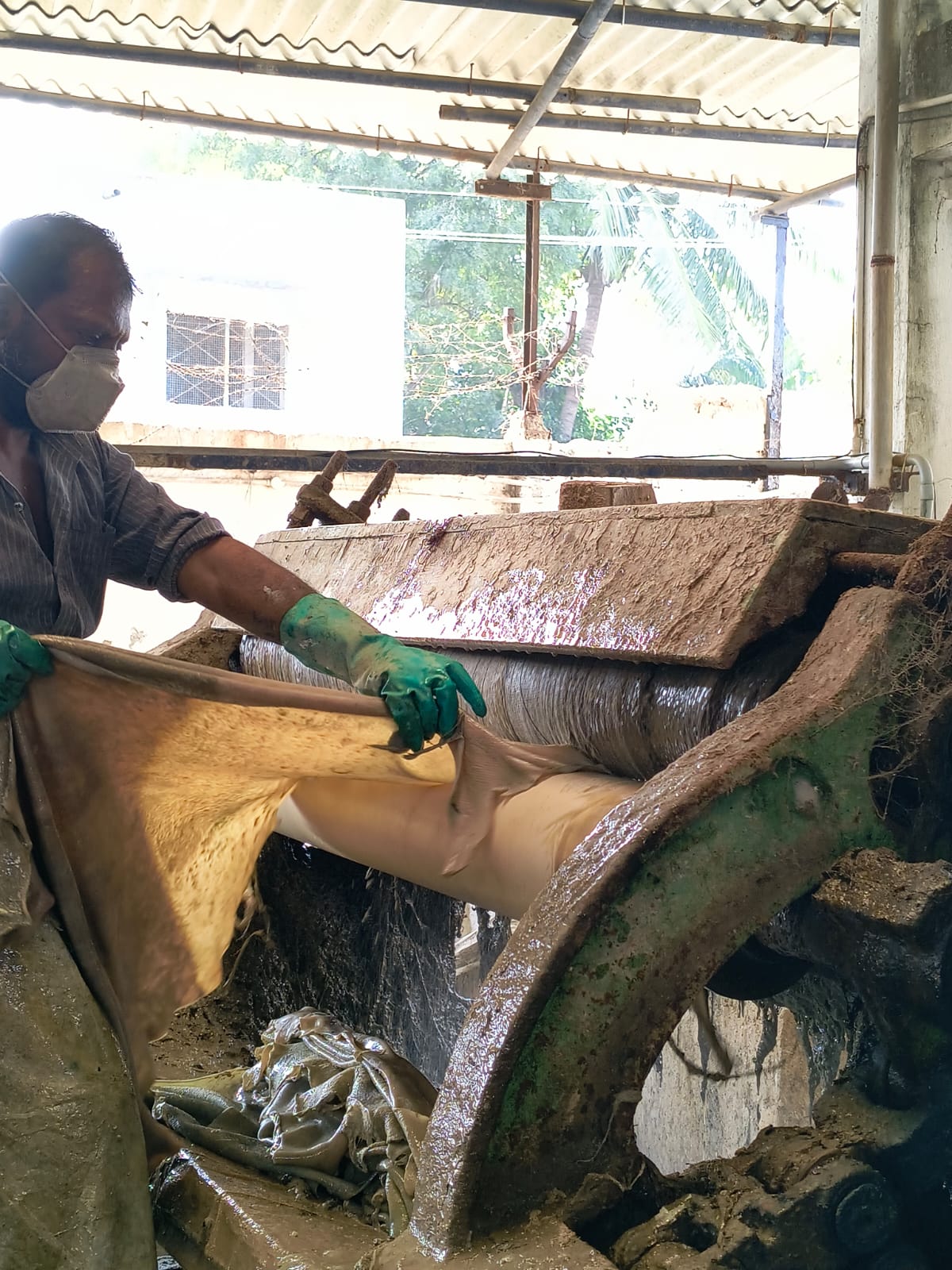 Dyeing Drums: For uniform color application and adding Fatliquoring Chemicals to add softness and flexibility. Setting Machine and Hooking - Removes excess water from wet leather and facilitates drying through the hooking process.