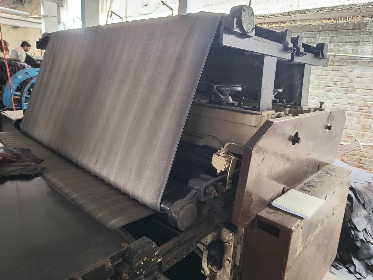 Molisa Staking - Enhances the softness of leather process. Padding and Plating - Padding and Pigment - Applies pigment to the leather and plates it with appropriate heat for a refined finish. Autospray Machine - Ensures uniform coating of pigments and finishes on leather, enhancing color consistency, texture, and durability with precision-controlled spraying technology.